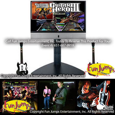 Guitar Hero gives you all of the excitement and thrill of being a rock star. Choose from multiple rock characters and jam at concert venues that grow in size as your rock star status progresses. Start your career playing at small clubs and bars, and work your way up to stadiums and arenas. We offer two versions of Guitar Hero, Our Champion Grade is good for the smaller events.