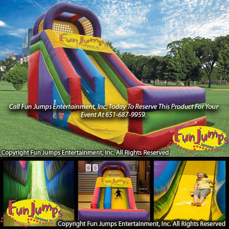 Our 18' slide is great for occasions both big and small. Works well in gyms other indoor or outdoor events. Ages = Younger Kids To Adults Power Requirement = (1)110 Circuits (20 amps) Size = 30' L x 12' W x 18' H Rental Rate = $385.00