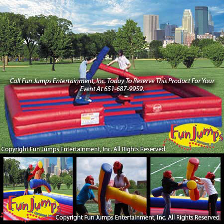 Take your Joust Pole in hand and prepare to defend yourself on your stand, Try to knock off your competition with the joust poles forcing them to land on the inflated base. Fun for participants and crowds.