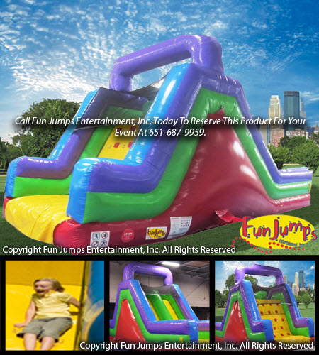 With this 3 Element Rock Climb Slide, players do just that. They climb the rock wall and slide down the slide to the finish. Works well in smaller gyms and other indoor or outdoor events.