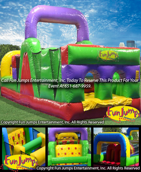 Let the race begin! Challenge yourself or a friend as you test your ability to maneuver through this 35' Wacky Obstacle Course thru a squeeze wall, crawl through, and climb & slide down the slide.