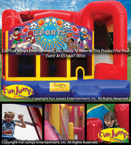 The All Star Sports 6 in 1 Combo unit is perfect for any special occasion. It will keep guests busy with its jumping area, crawl-through, climbing obstacle, slide and basketball hoop. Reserve one today!