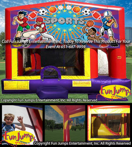 The All Star Sports Combo unit is perfect for any event. This inflatable has a jumping area, crawl-through, climb, slide and basketball hoop all in one!