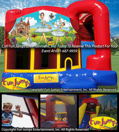 Ballerinas 4 in 1 Combo unit is a great inflatable for any event. Participants jump, crawl, climb, slide and play basketball in this action-packed unit. Reserve yours today!