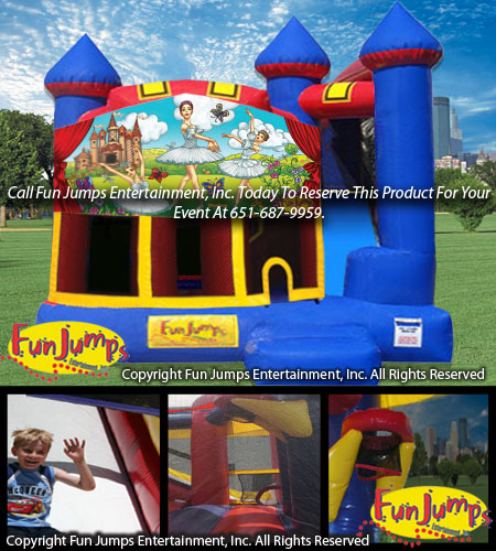 Ballerinas Castle 4 in 1 Combo unit is a great inflatable for any event. Participants jump, crawl, climb, slide and play basketball in this action-packed unit. Reserve yours today!