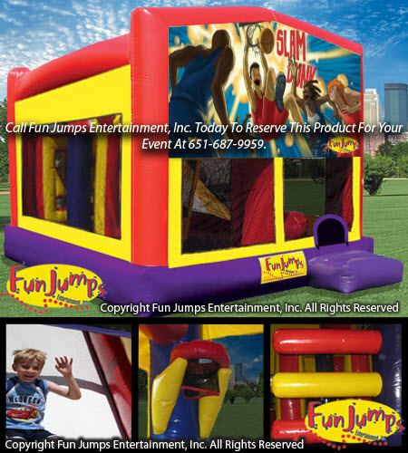 Get ready for a full court press, because with this awesome basketball all in 1 combo, you will be playing until the sun goes down! Inside this exciting bounce house, there is a jumping area, a basketball hoop, a tunnel, pop up obstacles, a climbing ramp and a slide.