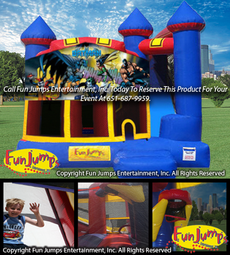 Party guests are sure to feel like Batman in this Castle 4 In 1 Combo unit. Filled with plenty of fun, it has a jumping area, a climbing ramp, a slide and a basketball hoop. This unit will keep kids busy for hours!