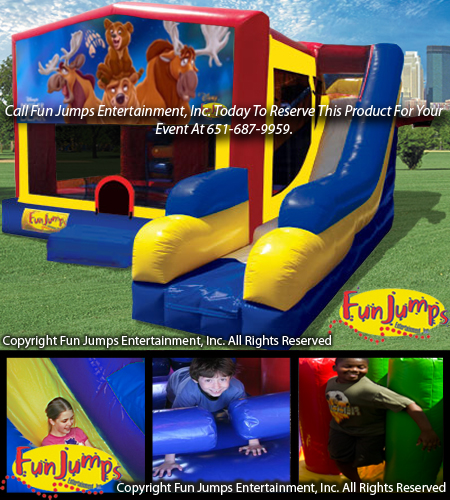 Come jump with Brother Bear characters this exciting 7 in 1 combo. Party goers will be entertained for hours by jumping, crawling, climbing, sliding and playing basketball.