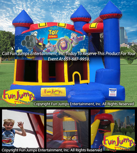 Buzz Lightyear Castle 4 In 1 Combo unit is a great inflatable for any event. Participants jump, crawl, climb, slide and play basketball in this action-packed unit. Reserve yours today!