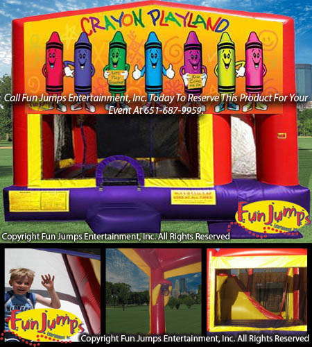 This Crayon Combo Unit compliments any event! Guests will have a great time, jumping, crawling, climbing, sliding and playing basketball as they show off their creativity!