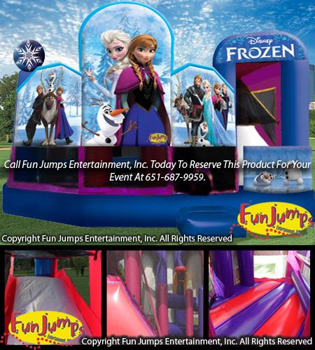 Our most popular slide combo, Disney Frozen 5-in 1 Combo contains a jumping area, basketball hoop, vertical and horizontal obstacle pillars, a ramp to climb up and a slide to go down. A good time will be had by all!!!