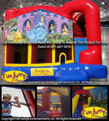 The Disney Princess 4 in 1 Combo is perfect for any princess event. This exciting inflatable contains a jumping area, basketball hoop, a ramp to climb up and a slide to go down. Let the magic begin!