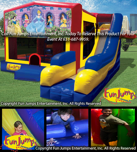 The Disney Princess 7 in 1 Combo is perfect for any princess event. This exciting inflatable contains a jumping area, basketball hoop, vertical and horizontal obstacle pillars, a ramp to climb up and a slide to go down. Let the magic begin!