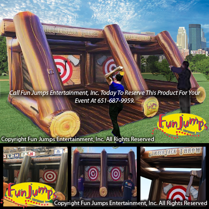 Double the Fun with our Double Lane Inflatable Foam Axe Throwing Interactive Game! Participants take turns trying get getting closest to the bullseye. This game is great for Carnivals, Western Themed Events, Corporate Parties, Schools, College Days, Team Building Actives, Churches, Fun Events in & around the Minneapolis - St Paul Area!