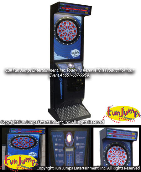 Players throw darts at the target, Can chose different games to play. Up To Four Players Can Play At The Same Time, Seven Different Games to Play, Plastic Safety Darts. Ages = Kids To Adults Power Requirement = (1)110 Circuit (20 amps)