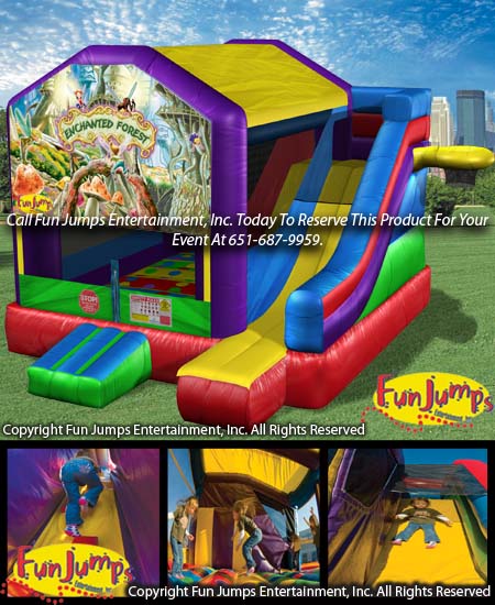 The Enchanted Fairies Slide Combo has a jumping area, crawl-through, climbing obstacle, slide, twister and basketball hoops. Both young and old will enjoy the fun!