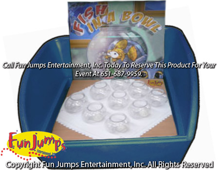 Players try to toss ping pong balls into the fish bowls to win!! Ages = Kids to Adults Includes = 6 Ping Pong Balls Size = 3' L x 3' W x 3' H Rental Rate = $60.00