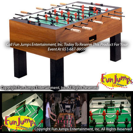 Play an opponent in a fun game of Foosball. Hit the ball back and forth until you score! Ages = Kids To Adults Includes = Foosball Size = 5' L x 3' W x 4' H Rental Rate = $225.00
