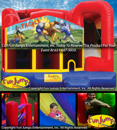 Prepare you kicker for the kick off, because this football 6 in 1 combo is sure to knock your socks off! It contains a large jumping area, basketball hoops, vertical and horizontal obstacle pillars, a ramp to climb up and a slide to go down!