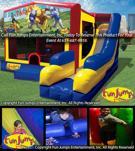 Prepare you kicker for the kick off, because this football 7 in 1 combo is sure to knock your socks off! It contains a large jumping area, basketball hoops, vertical and horizontal obstacle pillars, a ramp to climb up and a slide to go down!