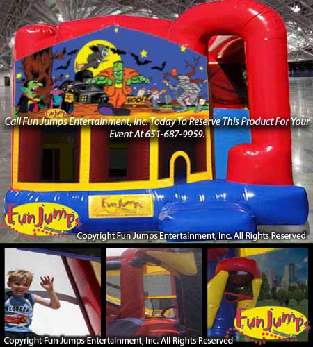 Rent this unit for your next scary event! With the Halloween 4 in 1 Combo, participants will keep busy by jumping, crawling, climbing, sliding and playing basketball.
