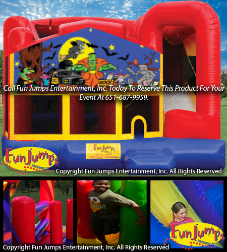 Rent this unit for your next scary event! With the Halloween 6 in 1 Combo, participants will keep busy by jumping, crawling, climbing, sliding and playing basketball.