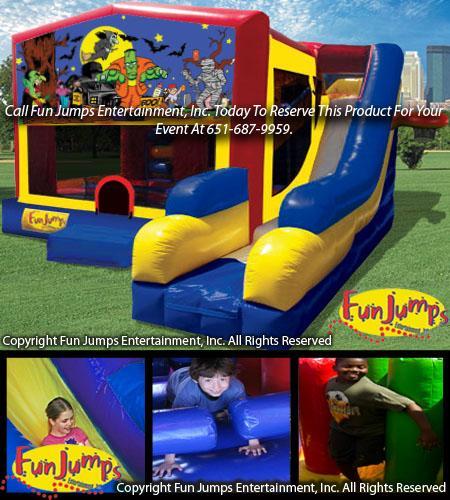 Rent this unit for your next scary event! With the Halloween 7 in 1 Combo, participants will keep busy by jumping, crawling, climbing, sliding and playing basketball.