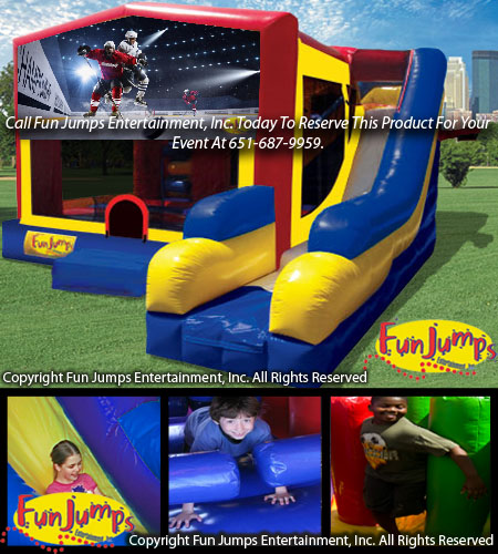Come jump with Hockey characters this exciting 7 in 1 combo. Party goers will be entertained for hours by jumping, crawling, climbing, sliding and playing basketball.