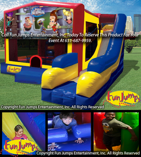 Come jump with Jimmy Neutron characters this exciting 7 in 1 combo. Party goers will be entertained for hours by jumping, crawling, climbing, sliding and playing basketball.