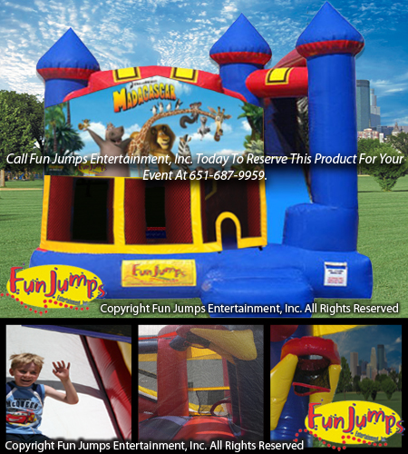 Madagascar Castle 4 in 1 Combo unit is a great inflatable for any event. Participants jump, crawl, climb, slide and play basketball in this action-packed unit. Reserve yours today!