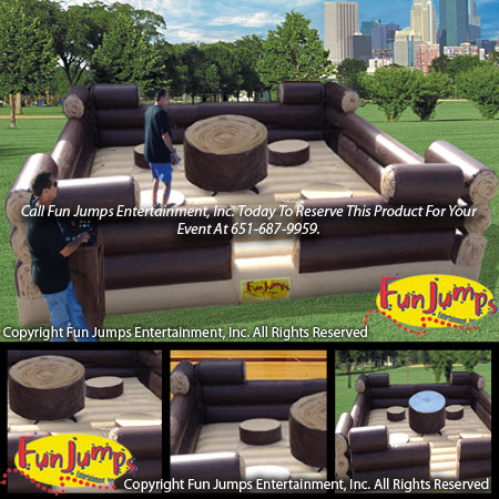 Up for a challenge? Try our New Mechanical Ripsaw. It is the latest rage. Players start on one platform and try to jump on the middle platform. The goal is to stay on the middle platform without falling off. This fun interactive has the capability to start off very slowly and advance to faster speeds according to the player's ability. The unit is surrounded by an inflatable ring.