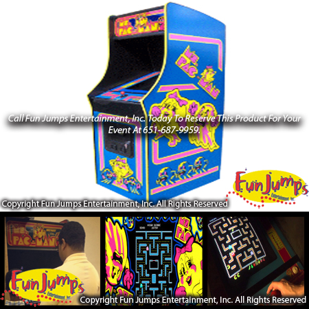 Our Ms Pacman & Games Standup Arcade Game features a variety of all your favorite game options like Ms Pacman, Galaga, Pac Man, Donkey Kong, Froger, Space Invaders, Centipede, Burger Time, Dig Dug, Millipede & many other games. This arcade game rental is great for inside events at Sporting Events, Corporate Parties, Schools, College Team Building Actives, Churches in & around the Minneapolis - St Paul Area!