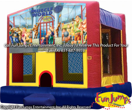 Time to get buff on this Muscle World Moonwalk! This exciting moonwalk is a perfect way to tire the little ones out while they have the times of their lives. This inflatable is great for Fitness Centers, Gyms, Heath Clubs, Sports Arenas, Schools & FUN Events!