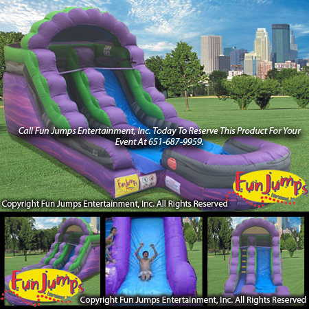 Looking for a way to keep kids entertained? Look no further….the Purple Cascade Water Slide is perfect for them! Not only does it keep kids busy….it tires them out as well. A great water slide for any party!