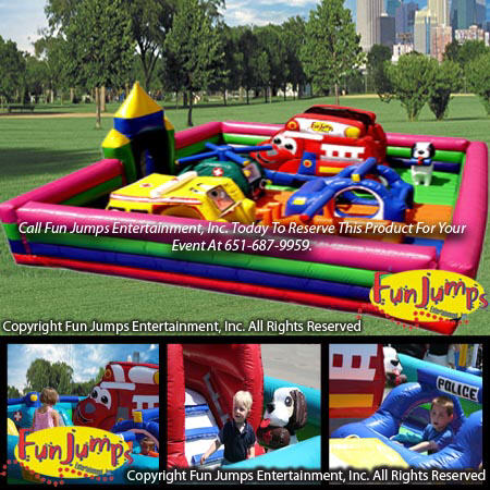 The Rescue Heroes game allows small children a fun and safe environment to play with their favorite public service vehicles. Slide down the fire truck slide, or chase the bad guys with the police car. Their imagination is their only limitation.