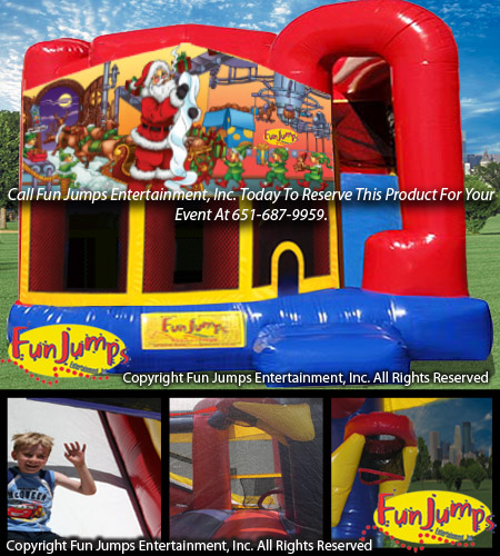 Santa Claus 4 in 1 Combo unit is a great inflatable for any event. Participants jump, crawl, climb, slide and play basketball in this action-packed unit. Reserve yours today!