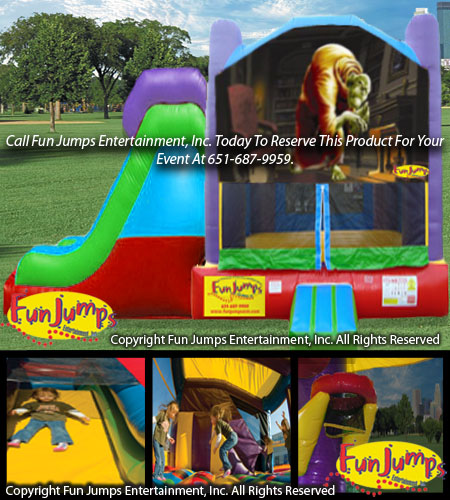 The Scary XL Slide Combo contains a large jumping area, basketball hoop, a ramp to climb up and a large slide to go down. It will definitely be a hit at your next FUN event!