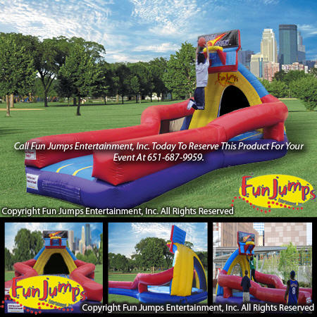 The Slam Dunk is every one’s chance to make slam dunk with out being all star basketball player. Just like our Velcro Wall you run and jump on the center trampoline and try to dunk the basketball in the hoop. Perfect for a large event, or a small party, the Slam Dunk is sure to impress and give guests an experience they will never forget.