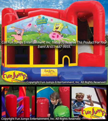 Join Sponge Bob and friends on a deep sea adventure in this 6 in 1 Combo unit. Guests will keep busy as they jump, crawl, climb, slide and play basketball. This unit is a hit at any event!