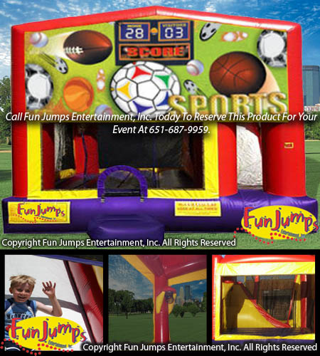 This popular combo unit has a jumping area, crawl-through, climb, slide and basketball hoop all in one! Perfect for any event. Ages = Kids To Adults Power Requirement = (1)110 Circuit (20 amps) Size = 18' L x 16' W x 15' H Rental Rate = $270.00