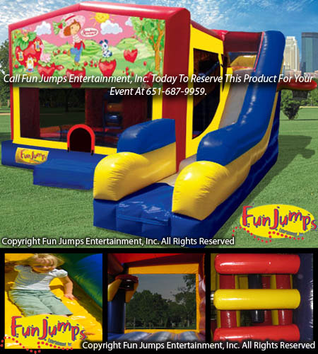 The Strawberry Shortcake 7 in 1 Combo unit is perfect for any event. This exciting combo inflatable contains a jumping area, basketball hoop, vertical and horizontal obstacle pillars, a ramp to climb up and a slide to go down. Let the fun begin!