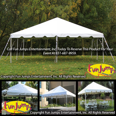 A 20 ft x 20 ft frame tent will accommodate 50 people for sit down dinners, 60 for buffet style dinners, and 80 for stand up/cocktail style party. Different Tent Colors & Sides Are Available. Size = 20' L x 20' W Rental Rate = $425.00