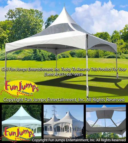 A 20 ft x 20 ft Sky High Peak Frame Tent will accommodate 50 people for sit down dinners, 60 for buffet style dinners, and 80 for stand up/cocktail style party. Different Styles Of Sides Are Available. Size = 20' L x 20' W Rental Rate = $495.00