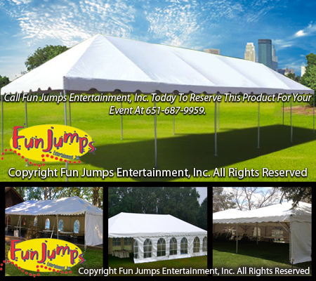 A 20 ft x 50 ft frame tent will accommodate sit down dinners, buffet style dinners, and stand up/cocktail style party. Please Call for Details. Sides Are Available. Size = 20' L x 50' W Rental Rate = $825.00