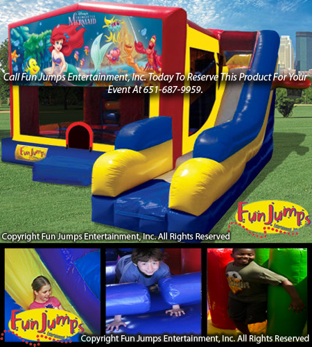 Come jump with the Little Mermaid in this exciting 7 in 1 combo. Party goers will be entertained for hours by jumping, crawling, climbing, sliding and playing basketball.
