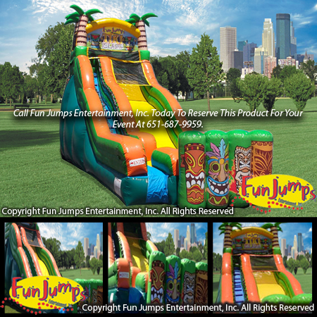 The Tiki Water Slide is perfect for your island get away! The eye-catching colors and graphics are sure to stand out at your next event! Hours of sliding Fun on a hot day!
