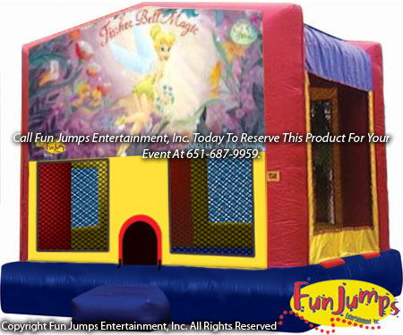 Come fly over never land with Tinker Bell & friends! This attractive and colorful inflatable bounce house provides jumpers with a place to jump and have fun.