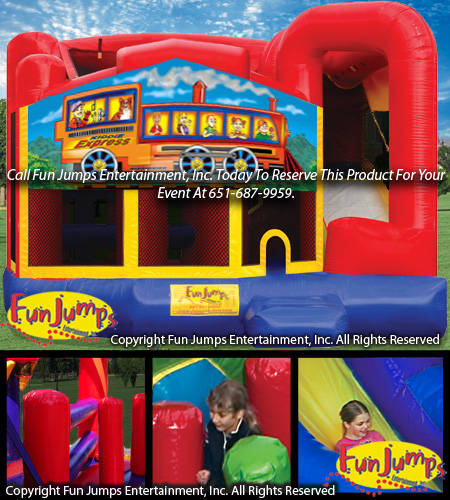 All aboard! Climb inside this Train 6 in 1 Combo unit for a fun filled time. Participants will keep busy by jumping, crawling, climbing, sliding and playing basketball.