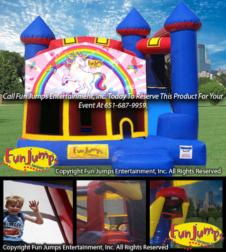 Unicorn Castle 4 in 1 Combo unit is a great inflatable for any event. Participants jump, crawl, climb, slide and play basketball in this action-packed unit. Reserve yours today!