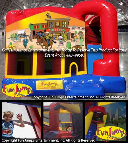 Are you planning a western themed party, having a BBQ or a Pig Roast? If so, the Western 4 in 1 Combo is perfect for your event. Guest will be entertained for hours as they jump, crawl, climb, slide and play basketball.